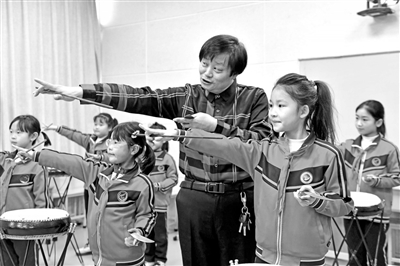12月30日,在惠民縣胡集鎮(zhèn)第一小學(xué),老師指導(dǎo)學(xué)生學(xué)習(xí)西河大鼓。近年來(lái),山東省惠民縣胡集鎮(zhèn)依托國(guó)家級(jí)非物質(zhì)文化遺產(chǎn)——胡集書(shū)會(huì),積極開(kāi)展書(shū)會(huì)進(jìn)校園活動(dòng),聘請(qǐng)曲藝專業(yè)人士為學(xué)生們開(kāi)展西河大鼓、快板、山東快書(shū)等教學(xué),讓孩子們了解優(yōu)秀的曲藝文化。