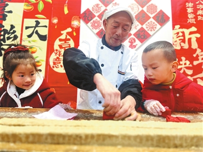“拜年不帶麻酥糖,請(qǐng)君不要進(jìn)廳堂……”在春節(jié)即將到來之際,安徽省黃山市歙縣王村鎮(zhèn)中心幼兒園的孩子們哼唱著歌謠,在老手藝人的指導(dǎo)下,制作當(dāng)?shù)氐姆俏镔|(zhì)文化遺產(chǎn)——頂市酥。本報(bào)記者 王志鵬 通訊員 黃婷 攝
