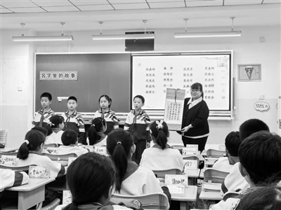 北京市東城區(qū)教育科學(xué)研究院小學(xué)語文教研員王超男在上觀摩課。學(xué)校供圖