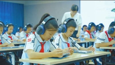 ②海口市濱海第九小學(xué)美麗沙分校學(xué)生在使用國家智慧教育平臺上課。