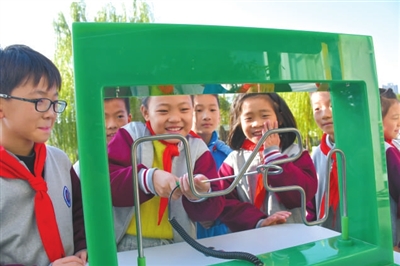 霍邱縣城關鎮(zhèn)中心小學學生在科技節(jié)上鍛煉手眼協(xié)調能力。黎志 攝