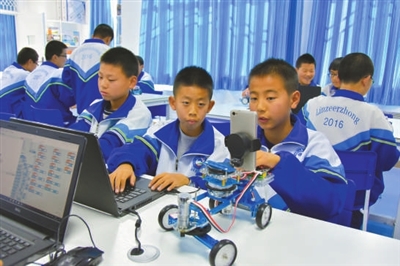 甘肅省張掖市臨澤縣第二中學學生機器人工作室開課中。資料圖片