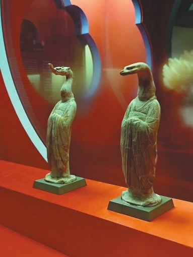 除了兩尊陶俑外,來做客的“嘉賓”還有商代的婦好鸮尊、春秋蛇紋銅提鏈罐、唐代伏羲女媧像立幅等200余件(套)文物,涵蓋青銅、玉器、錢幣、陶瓷、金銀器、漆器和書畫等多個品類。它們的造型、圖案、歷史背景背后所蘊(yùn)含的吉祥祝福,與今天我們對美好生活的向往遙相呼應(yīng),因此,文物也就不僅是歷史的見證,更成為了傳遞祥瑞與福澤的象征。