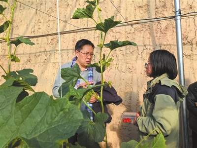 雖然除夕將近,但還有3名學生堅守在試驗站里,忙得不亦樂乎。他們按照自己的課題,調節(jié)大棚內果蔬的生長條件,觀察其長勢。