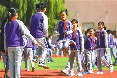 ①青島虎山路小學學生在課間15分鐘跳繩。張鷹 攝