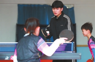 “小朋友們,排好隊(duì)啦!每人4個(gè)球一循環(huán)!”在徐州幼兒師范高等??茖W(xué)校體育學(xué)院體育俱樂部,體育學(xué)院學(xué)生秦政在教一群孩子打乒乓球。他耐心細(xì)致的指導(dǎo),贏得了孩子們的一致好評(píng):“這樣的大哥哥大姐姐,我們喜歡?!?