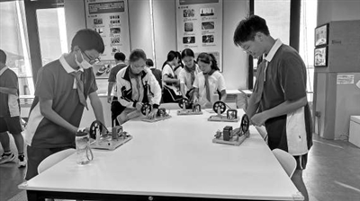 廣東省深圳市鹽田區(qū)外國語學(xué)校的學(xué)生在進(jìn)行趣味實(shí)驗(yàn)。學(xué)校供圖