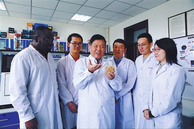 ①中國工程院院士、吉林農(nóng)業(yè)大學(xué)教授李玉給博士研究生上實驗課。