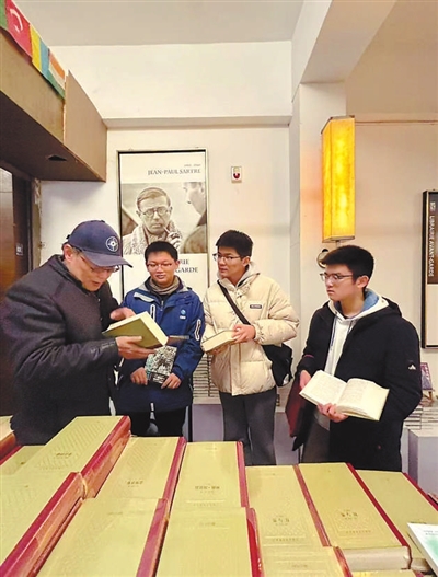 在書(shū)店,教師與學(xué)生交流。