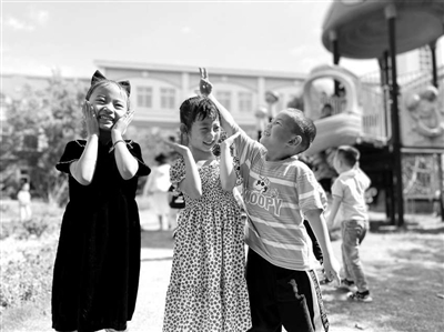 不同年齡的孩子在戶外一起玩游戲。 喻興艷 供圖