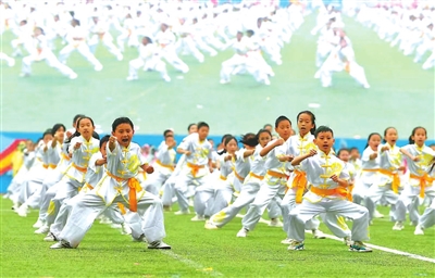 ②北京市中小學(xué)生武術(shù)健身操比賽上,參賽學(xué)生一展風(fēng)采。 北京教育融媒體中心 供圖