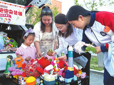 ①新疆生產(chǎn)建設(shè)兵團第八師石河子市實驗幼兒園的孩子在開展義賣。