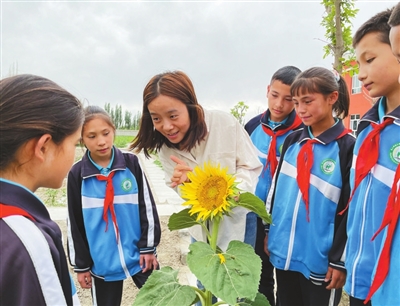②新疆生產(chǎn)建設(shè)兵團第三師四十四團第一中學(xué)的教師在帶領(lǐng)學(xué)生認識植物。