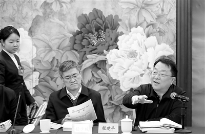 3月7日,全國政協(xié)十四屆三次會議教育界別小組會議上,全國政協(xié)委員程建平(右)發(fā)言。本報記者 張學(xué)軍 攝