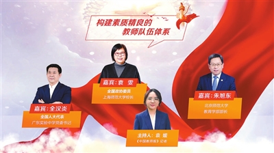 日前,全國政協(xié)委員、上海師范大學(xué)校長袁雯,全國人大代表、廣東實驗中學(xué)黨委書記全漢炎,北京師范大學(xué)教育學(xué)部部長朱旭東做客中國教育報刊社“兩會訪談錄”,圍繞“構(gòu)建素質(zhì)精良的教師隊伍體系”建言獻(xiàn)策。