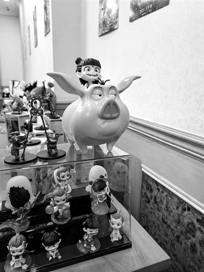 四川代表團(tuán)會(huì)議現(xiàn)場(chǎng)布置的《哪吒》系列周邊產(chǎn)品展區(qū)。本報(bào)記者 林煥新 攝