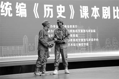 為更好推動(dòng)統(tǒng)編教材的使用,并檢驗(yàn)教材使用成效,河南省教育廳在第九屆河南省中等職業(yè)學(xué)校學(xué)生素質(zhì)能力大賽中,設(shè)置了三科教材課本劇賽項(xiàng),通過(guò)活動(dòng)育人、實(shí)踐育人。 圖為統(tǒng)編《歷史》課本劇省級(jí)競(jìng)賽現(xiàn)場(chǎng)。 (資料圖片)