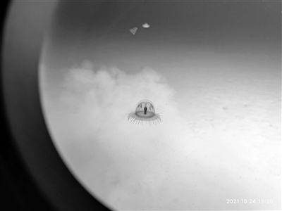 科研團(tuán)隊(duì)透過(guò)萬(wàn)米載人潛水器“奮斗者”號(hào)舷窗看到雅浦海溝最深區(qū)域的奇特水母。