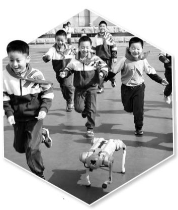 北京景山學(xué)校學(xué)生與機器人一起奔跑。學(xué)校供圖