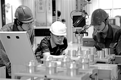 浙江工業(yè)職業(yè)技術(shù)學(xué)院學(xué)生在高端裝備制造技術(shù)產(chǎn)教融合實(shí)踐中心實(shí)訓(xùn)。 沈佳丹 攝