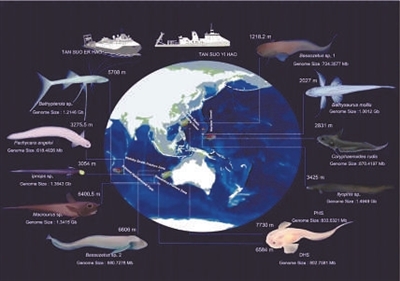 團隊經(jīng)過多次深海巡航,采集了來自深海不同區(qū)域的11種魚類樣本,通過對這些樣本的基因組數(shù)據(jù)進行深入分析,構(gòu)建了深海魚類的“生命進化樹”,揭示了脊椎動物征服深淵的歷程。結(jié)果顯示,少數(shù)類群的深海魚類在1億年前便開始適應深海環(huán)境,而大多數(shù)現(xiàn)存的深海魚類則是在6500萬年前的大滅絕事件后才進入深海區(qū)域。