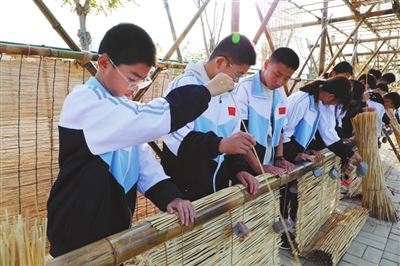 濱州市沾化區(qū)濱海鎮(zhèn)實驗學(xué)校學(xué)生在學(xué)習(xí)葦編技藝。 濱州市沾化區(qū)教體局供圖
