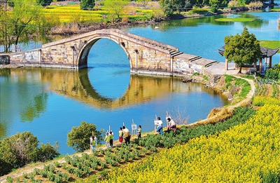 3月24日,浙江省湖州市長(zhǎng)興縣開發(fā)區(qū)實(shí)驗(yàn)幼兒園的孩子們?cè)诶蠋熤笇?dǎo)下寫生創(chuàng)作,感受春日之美。陳海偉 攝