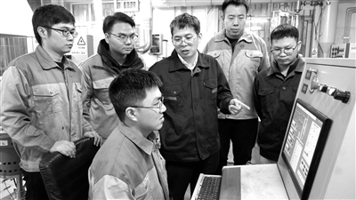 東北大學(xué)教授儲滿生(右三)和學(xué)生在實驗室開展工作。 東北大學(xué)供圖(資料圖片)