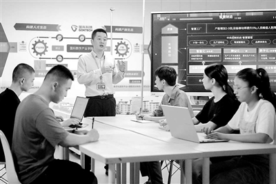 ②泉州職業(yè)技術(shù)大學計算機專業(yè)學生在福建國科信息科技有限公司實訓基地上課。