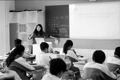 北大附中語文教師張鵬以“權(quán)謀啟智,蒙學(xué)開卷”為主題,向初一年級的學(xué)生們展示《孫權(quán)勸學(xué)》這篇文言文的魅力。圖為學(xué)生在課堂上一邊思考一邊認(rèn)真記筆記。資料圖片