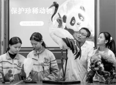 4月8日,在甘肅省張掖育才中學(xué),科學(xué)教師帶領(lǐng)學(xué)生零距離觀察珍稀動物標(biāo)本,傳授保護(hù)珍稀動物的知識。4月8日是國際珍稀動物保護(hù)日,甘肅省張掖市各中小學(xué)開展“以‘珍惜’守護(hù)‘珍稀’”主題教育活動,加深學(xué)生對珍稀動物的認(rèn)識和了解,增強(qiáng)環(huán)保意識。 楊瀟 攝
