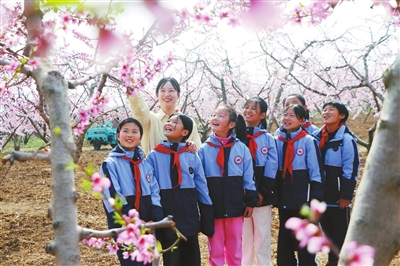 4月9日,山東省高密市東北鄉(xiāng)社區(qū)東流口子小學(xué)開展踏青研學(xué)活動,孩子們在教師的帶領(lǐng)下,來到校園周邊的桃花園嬉戲玩耍,盡情感受大自然的魅力。