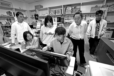 4月23日,“絲路寧夏文創(chuàng)”團(tuán)隊(duì)成員在實(shí)訓(xùn)室設(shè)計(jì)、制作文創(chuàng)產(chǎn)品。