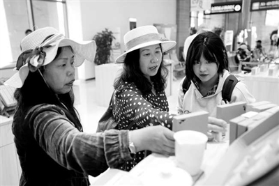 4月23日,“絲路寧夏文創(chuàng)”團(tuán)隊(duì)成員楊柳鈺(右一)在寧夏銀川西夏陵博物館向游客介紹團(tuán)隊(duì)研發(fā)的文創(chuàng)產(chǎn)品。