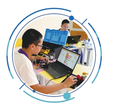 中央民族大學(xué)附屬中學(xué)紅河州實(shí)驗(yàn)學(xué)校八年級學(xué)生在編寫生態(tài)保護(hù)機(jī)器人代碼。學(xué)校供圖