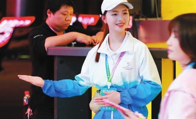 4月25日晚,在第八屆中小學(xué)生藝術(shù)展演活動(dòng)全國(guó)匯演開幕式上,學(xué)生志愿者引導(dǎo)觀眾有序入場(chǎng)。 本報(bào)記者 張學(xué)軍 攝