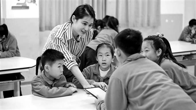 浙江省杭州市未來科技城海曙小學(xué)的教師在輔導(dǎo)學(xué)生。學(xué)校供圖