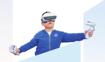 圖片②:學(xué)生進(jìn)行VR校園火災(zāi)逃生體驗(yàn)。