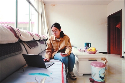 ? 蘇乙桐在家里通過視頻連線的方式了解柳家臺(tái)村豐泰農(nóng)業(yè)合作社的水稻育秧情況。