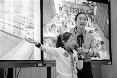 ①浙江省樂清市實驗小學(xué)濱海校區(qū)學(xué)生和龍西鄉(xiāng)龍西學(xué)校三年級學(xué)生隔著屏幕同上一堂數(shù)學(xué)課。浙江省教育廳供圖