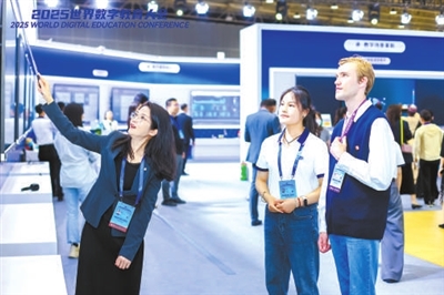 工作人員在介紹教育數(shù)字化成果。 2025世界數(shù)字教育大會會務組供圖