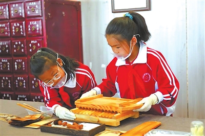 活動(dòng)現(xiàn)場(chǎng),學(xué)生還動(dòng)手制作各類藥丸等,并通過(guò)書寫中醫(yī)經(jīng)典、設(shè)計(jì)草藥書簽等藝術(shù)品,讓中醫(yī)藥文化“活”起來(lái)。“我們從2017年就開始探索將中醫(yī)藥文化融入教育教學(xué),通過(guò)經(jīng)典誦讀、書法武術(shù)、勞動(dòng)實(shí)踐等多種形式,讓孩子們?cè)跐撘颇性鰪?qiáng)文化自信?!痹撔PiL(zhǎng)范志敏表示,“下一步,我們將創(chuàng)新勞動(dòng)教育評(píng)價(jià)機(jī)制,推行‘家族制’管理,通過(guò)合作種植,培養(yǎng)學(xué)生的家庭責(zé)任感和團(tuán)隊(duì)精神,同時(shí)深化傳統(tǒng)文化教育?!?/p>
