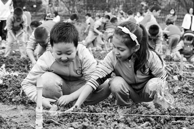 成都市武侯區(qū)的學生在種植蔬菜。 資料圖片