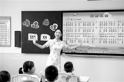 ①深圳市光明區(qū)尚美小學(xué)音樂教師閻婕帶領(lǐng)學(xué)生在唱中樂,在唱中學(xué)。圖為三年級的學(xué)生跟隨教師陶醉在春天的“嘀哩哩”中。