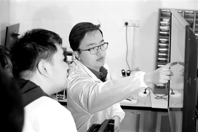 杜靈杰指導(dǎo)學(xué)生做實驗。學(xué)校供圖