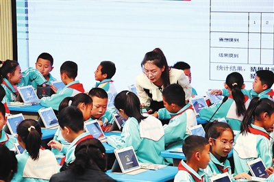 ①寧夏銀川市金鳳區(qū)實(shí)驗(yàn)小學(xué)將人工智能融入課堂教學(xué)。學(xué)校供圖