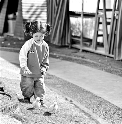 ③幼兒陪著小鴨去散步。 杭州市西湖區(qū)溪蝶幼兒園供圖