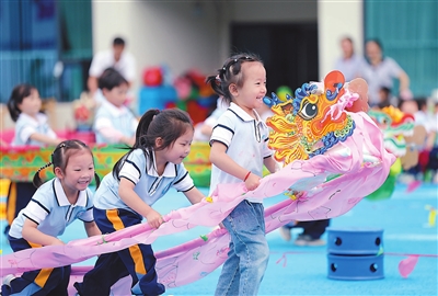 近日,湖南省永州市道縣教育局示范幼兒園的小朋友在參加旱地“龍舟”比賽。該幼兒園舉行“品民俗 賽龍舟”趣味比賽活動(dòng),讓孩子們?cè)谶\(yùn)動(dòng)中感受傳統(tǒng)民俗文化魅力。