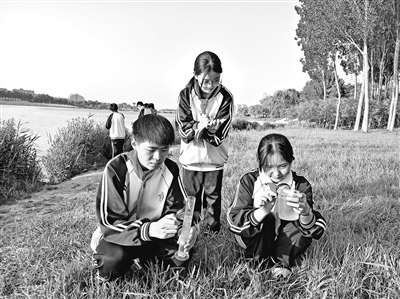 育華學(xué)校學(xué)生在探究大汶河生態(tài)系統(tǒng)退化原因。 學(xué)校供圖