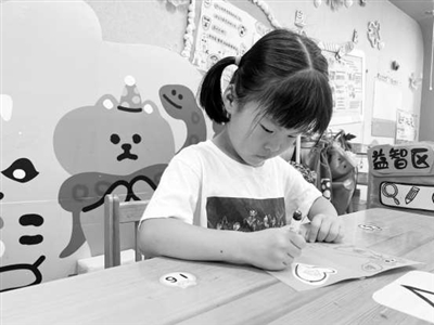 幼兒在給朋友“寫信”。蔣蕾 攝